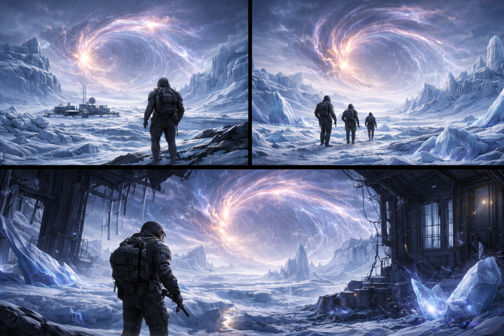 A fractured reality set in the frozen silence of Antarctica, where light bends, time fractures, and reality itself begins to break.